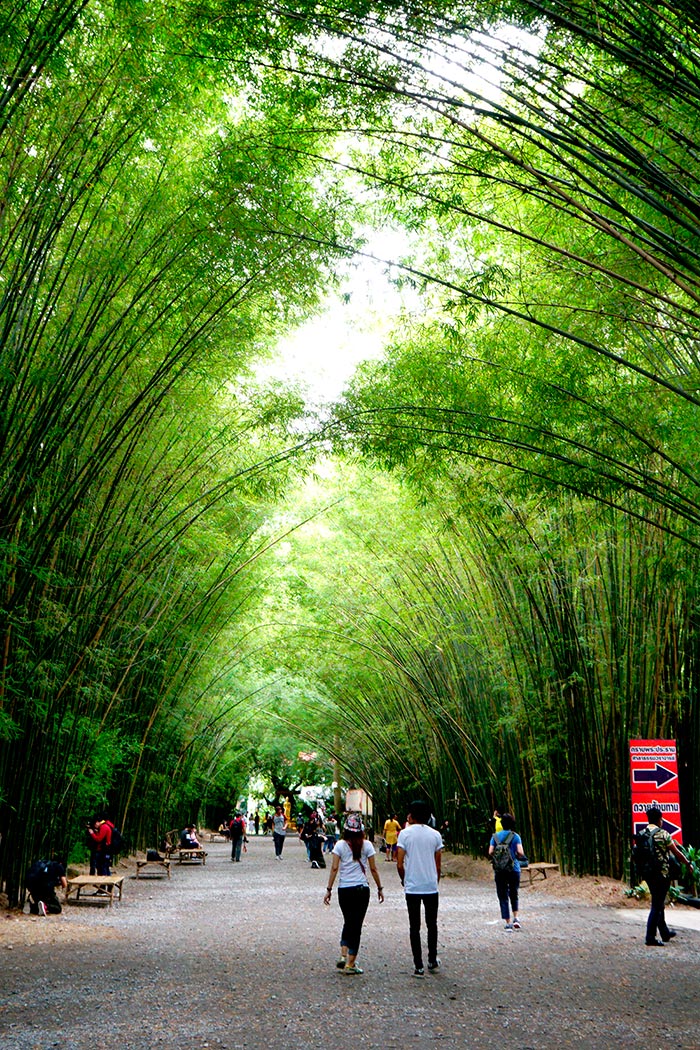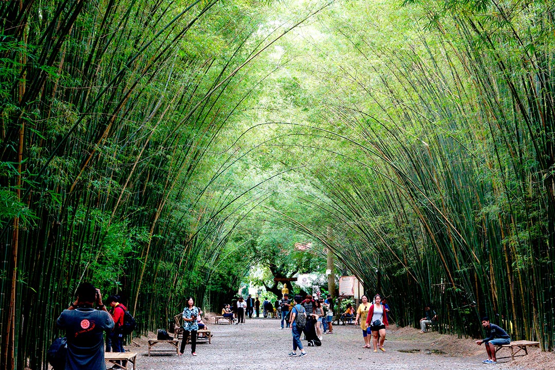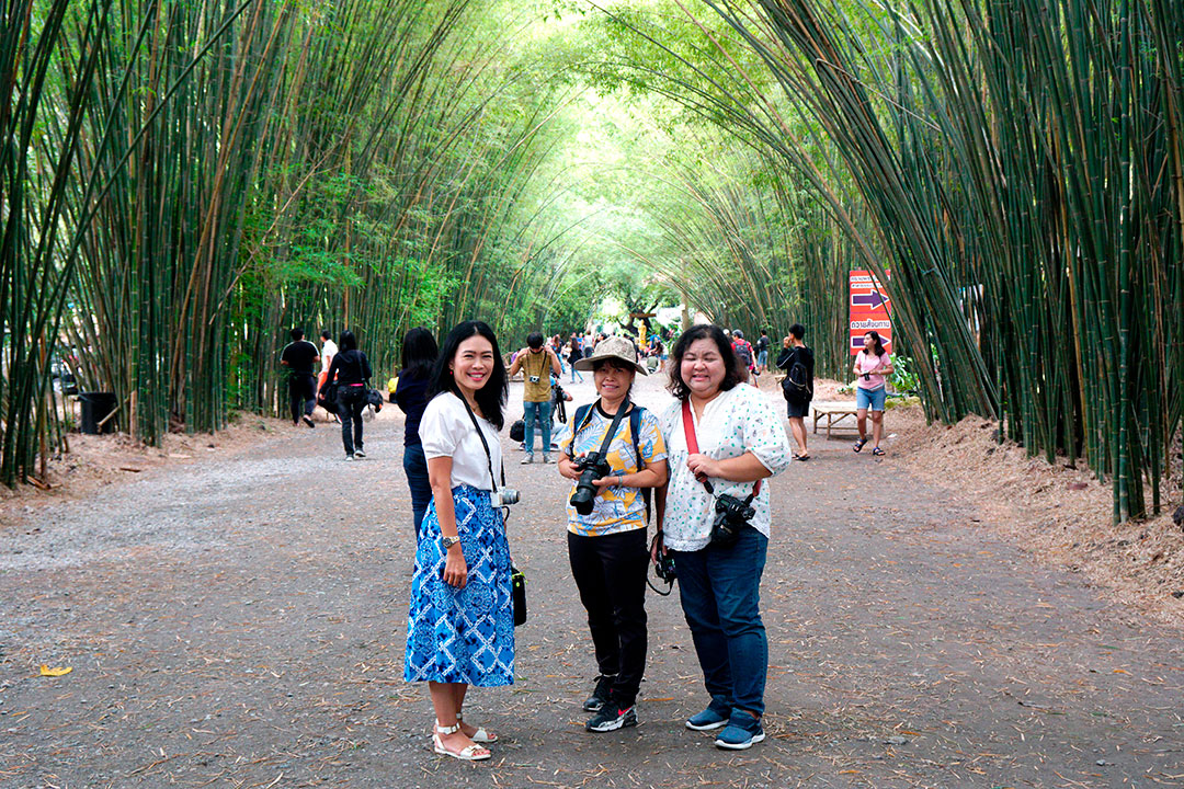 จุดแรก เช็คอินของเรา ซุ้มป่าไผ่ วัดจุฬาภรณ์วนาราม เหมือนได้ไปเที่ยวป่าไผ่อาราชิยาม่า ในประเทศญี่ปุ่น ซุ้มป่าไผ่นี้จะตั้งอยู่ในทางข้างเข้าวัดจุฬาภรณ์วนาราม ตั้งอยู่ที่อำเภอบ้านนา วัดค่อนข้างเงียบสงบ ลงรถปุ๊บเราก็จะได้สัมผัสบรรยากาศเหมือนอยู่ประเทศญี่ปุ่น ซุ้มป่าไผ่ที่นี่เกิดขึ้นเองตามธรรมชาติ แล้วโน้มเข้าหากันตามธรรมชาติ ทอดตัวเป็นแนวยาวหลายสิบเมตร ให้ความร่มรื่น แต่พอคณะ CAMERART ถึงที่ เราก็เห็นแต่พวกเราเอง 555… มุมถ่ายที่จะถ่ายจากด้านหน้าสุด จะดูเหมือน ป่าไผ่อาราชิยาม่า เป็นอีกสถานที่ท่องเที่ยวที่จัดว่าเป็น อันซีนที่ห้ามพลาด ใครชอบถ่าย Portrait ที่นี่เหมาะมาก ยิ่งช่วงฤดูฝนแบบนี้ ป่าไผ่จะยิ่งเขียวขจี สีสันสดใส ทริปนี้เราได้สองนางแบบกิตติมศักดิ์ พี่ต๋อง และพี่อลิส มาเป็นนางแบบจำเป็นให้เพื่อนๆ