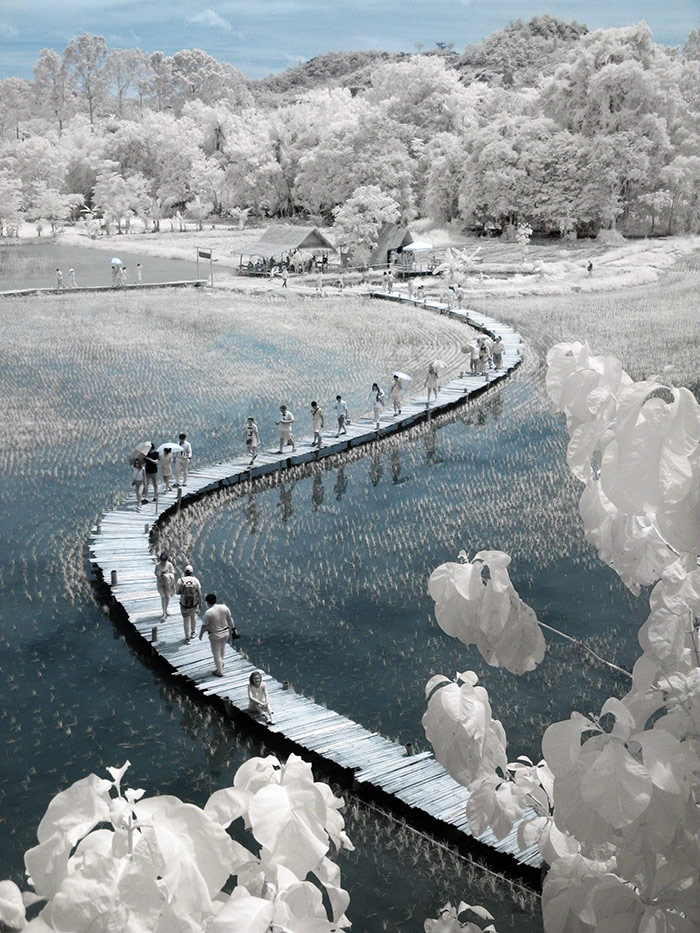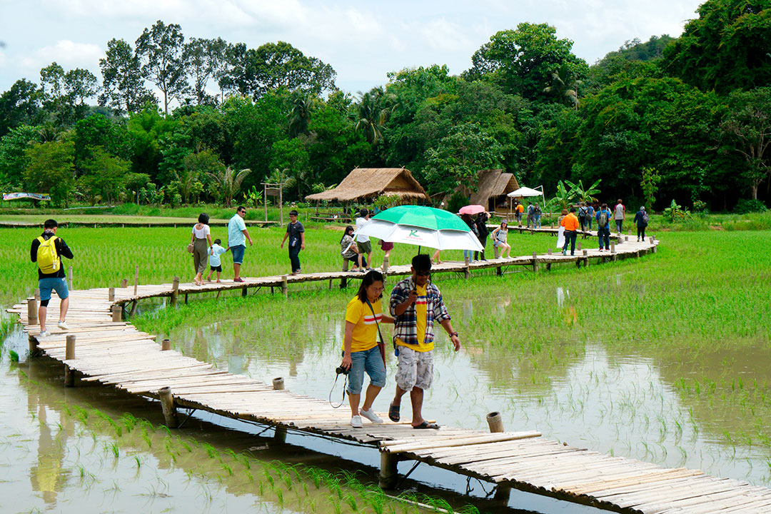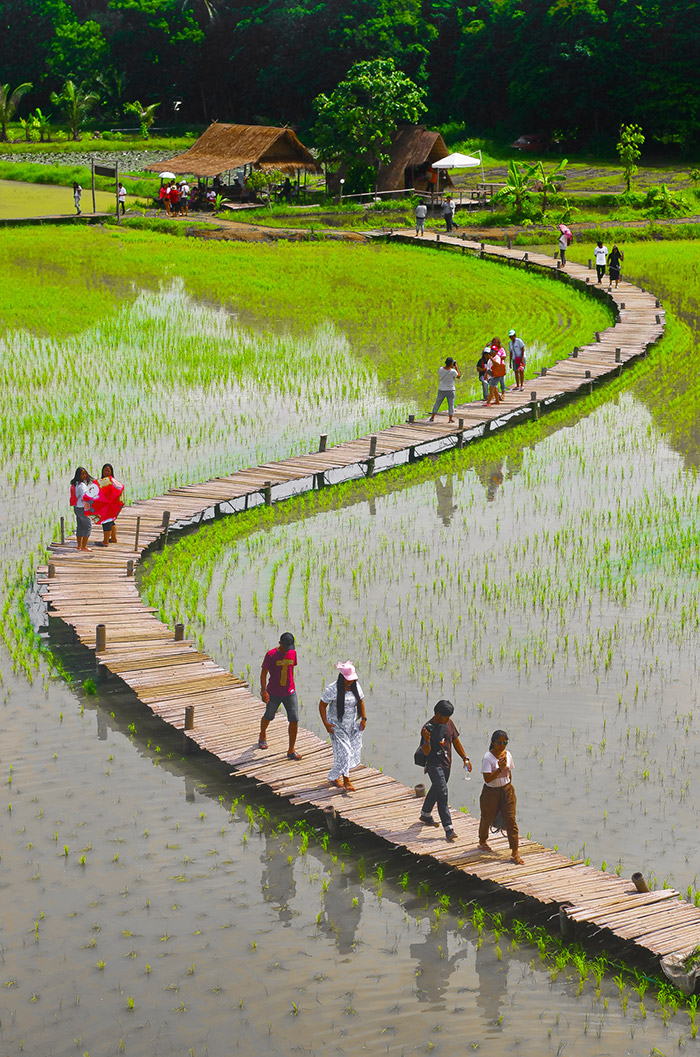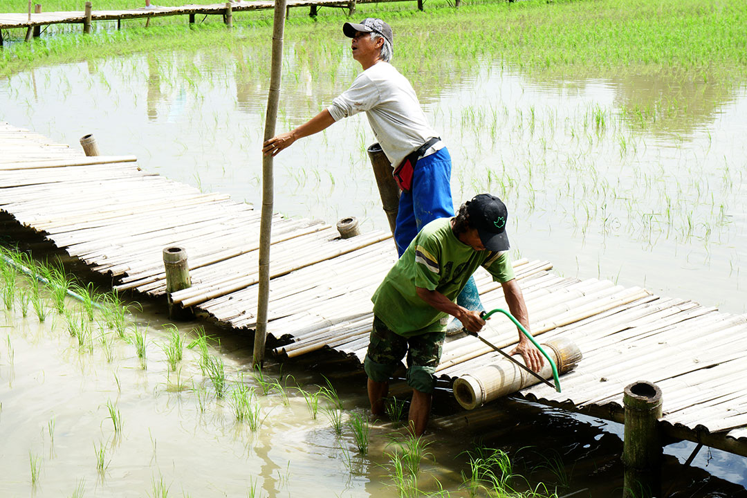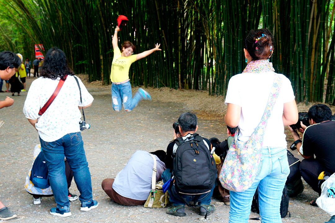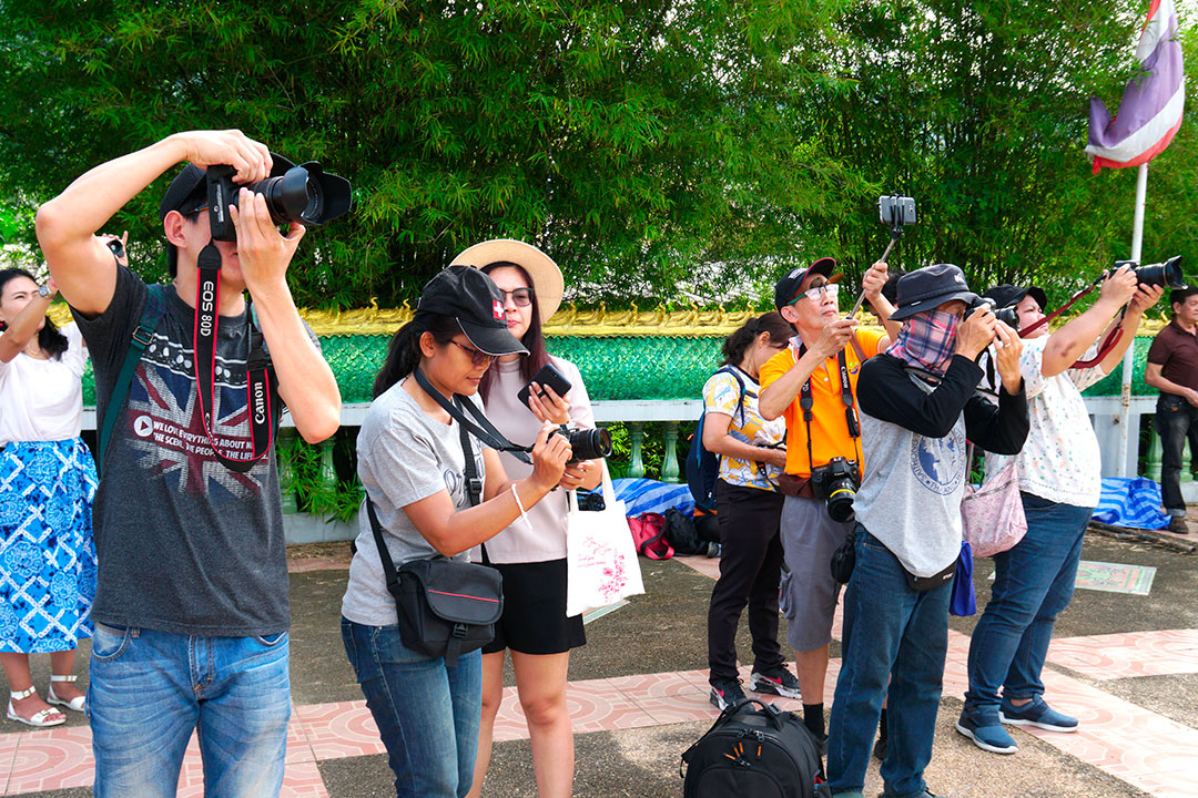 ระหว่างรอ ก็เดินเก็บภาพกันไปเรื่อย จนได้ยินเสียงร้องโวยวาย…อ้าว…เสารองสะพาหัก เกือบเทกระจาดนักท่องเที่ยวลงไปดำนาแทนแล้ว ช่วงที่เราไปนักท่องเที่ยวเยอะจริงๆ… แค่คณะ CAMERART ก็ 80 กว่าคนไปแล้ว คุณอ๊อด เลยขอตัวไปซ่อมสะพานก่อน ช่วงระหว่างรอการซ่อมสะพาน ก๊วนแก็งค์ CAMERART ก็รอเก็บภาพช็อตเด็ด เพื่อจะมีเพื่อนๆ CAMERART คนไหนล่วงลงน้ำบ้าง จะได้เป็นดาราหน้ากล้อง ยิ่งกว่าเจอกองทัพนักข่าวอีก 555… แต่ทุกคนก็ไม่มีใครพลาด เข้าทำสะพานแข็งแรงอยู่… แม้จะใช้วัสดุจากธรรมชาติ สไตล์ ECO แนวรักษ์โลก เป็นมิตรกับสิ่งแวดล้อม ที่กำลังเป็นกระแสนิยมในช่วงนี้ ทุ่งนามุ้ย จัดว่าเป็นอีกแหล่งท่องเที่ยวที่เป็นมิตรกับสิ่งแวดล้อม พอ คุณอ๊อด ทำการซ่อมแซมสะพานเรียบร้อย เราก็ได้เกียรติจากคุณแม่ค้า ที่อาสามาเป็นแบบแสดงการดำนา เป็นชาวนาที่อารมณ์ดีมาก โชว์ฟ้อนรำเรียกรอยยิ้มให้พวกเราทุกๆ คนได้อย่างดี เก็บภาพการสาธิตการดำนาไปก็รอยยิ้มเปื้อนหน้ากันไป นี่แหละความสุขของการถ่ายภาพ จนหลายคนถามว่าไปที่เดิมๆ บ่อยๆ ไม่เบื่อบ้างเหรอ ต้องบอกว่าไม่เคยเบื่อเลย เพราะชอบบรรยากาศการของเดินทาง ซึ่งมันไม่สามารถหาอ่านเอาจากหนังสือ หรือแค่ดูภาพถ่าย มันเป็นความรู้สึกที่หาได้เมื่อออกเดินทางเท่านั้น นี่เองอาจจะเป็นเหตุผลที่ทริป CAMERART เต็มเร็วมาก ไม่ใช่แค่สถานที่ท่องเที่ยว แต่มันคือ มิตรภาพ และความสุขของการได้เดินทางกลับใครหลายๆ คน ที่ชอบในเรื่องเดียวกัน และที่สำคัญทริป CAMERART ไม่เคยจำกัดว่าต้องใช้กล้องถ่ายภาพค่ายไหน ไม่ว่าจะเป็น DSLR, Mirrorless หรือแม้แต่โทรศัพท์ถ่ายภาพ ก็สามารถร่วมทริปกับ CAMERART ที่นี่เราไม่แบ่งค่าย และรุ่นกล้อง แค่คุณมีหัวใจที่รักในการถ่ายภาพก็สามารถมาร่วมทริปกับเราได้ทั้งนั้น นี่อาจจะเป็นอีกหนึ่งเหตุผลที่หลายต่อหลายคนหลั่งไหลมาร่วมกิจกรรมกับเรา เป็นอีกหนึ่งความฮอตฮิตของทริป CAMERART โปรแกรมยังไม่ออกก็จองกันแล้ว ขอบคุณทุกความไว้วางใจที่มีเรา eyejung เองที่อยู่ในฐานะผู้จัด ก็รู้สึกขอบคุณทุกๆ ท่าน ที่มั่นใจว่าเราจะเลือกสถานที่ ที่ให้ทุกคนได้เลือกมุมมองในการถ่ายภาพของตัวเองได้ทุกทริป