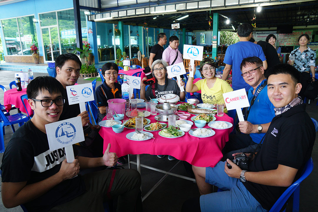หมดเวลาแล้วจริงๆ เราต้องออกเดินทางไปทานอาหารเที่ยงกันแล้ว รอบนี้เราได้รับการอภินันทนาการจากทาง ททท. อีกเช่นเคย กับ ททท.สำนักงาน จังหวัดนครนายก ณ ร้านไก่ย่าง 2 สาว ร้านไก่ย่างเจ้าดังเมืองนครนายก ที่ใครมาเที่ยวแถวน้ำตกสาลิกา หรือ เขื่อนขุนด่านปราการชล ต้องแวะฝากท้อง มีบริการทั้ง อาหารไทย อาหารอีสานรสแซบ ซึ่งทางท่าน ผู้อำนวยการสำนักงาน ททท.สำนักงานนครนายก ได้มอบให้ คุณประวัติ มุ่งเจริญรัตน์ รองผู้อำนวยการสำนักงานฯ เป็นผู้ประสานงาน และเลือกร้านอาหารให้เราในครั้งนี้ ทานอาหรแบบเติมไม่อั้นกันเรียบร้อยแล้ว พร้อมออกเดินทางต่อไปยัง ทุ่งนามุ้ย ขอขอบคุณ ททท. สำนักงานครนายก ไว้ ณ ที่นี้ด้วยคะ….