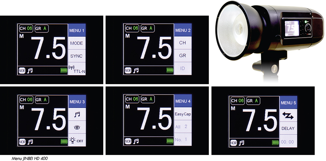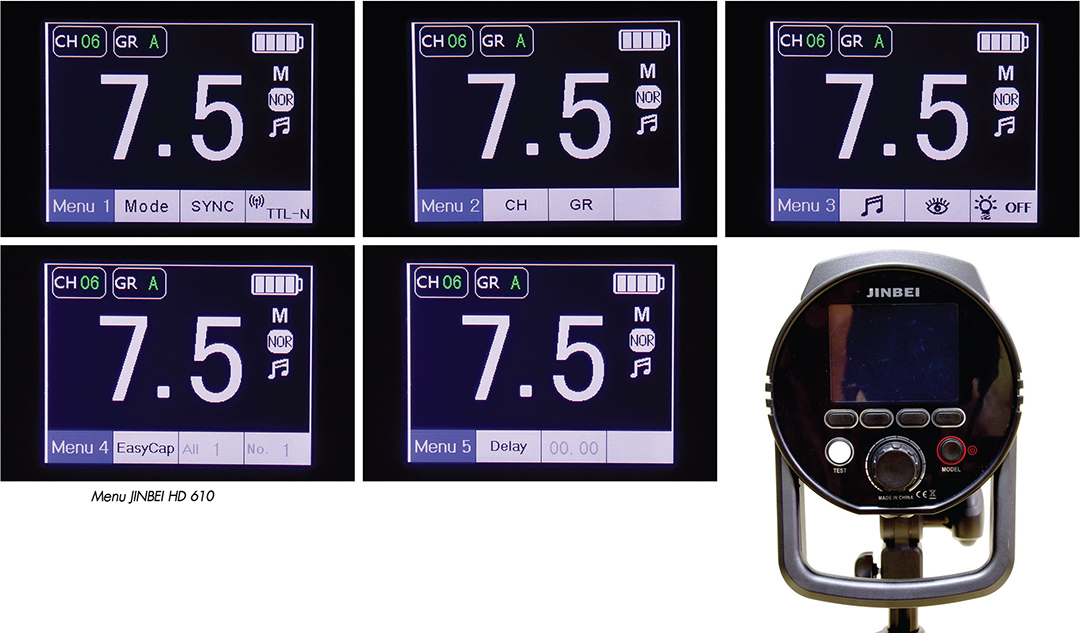 Flash Duration JINBEI HD 610 และ JINBEI HD 400 ใน Normal อยู่ที่ 1/800-1/8500 วินาที แต่ในระบบ Freeze จะอยู่ที่ 1/800-1/1900 วินาที