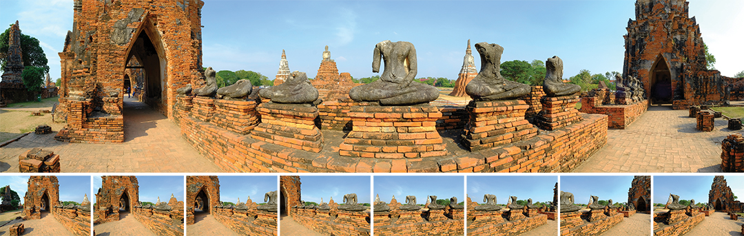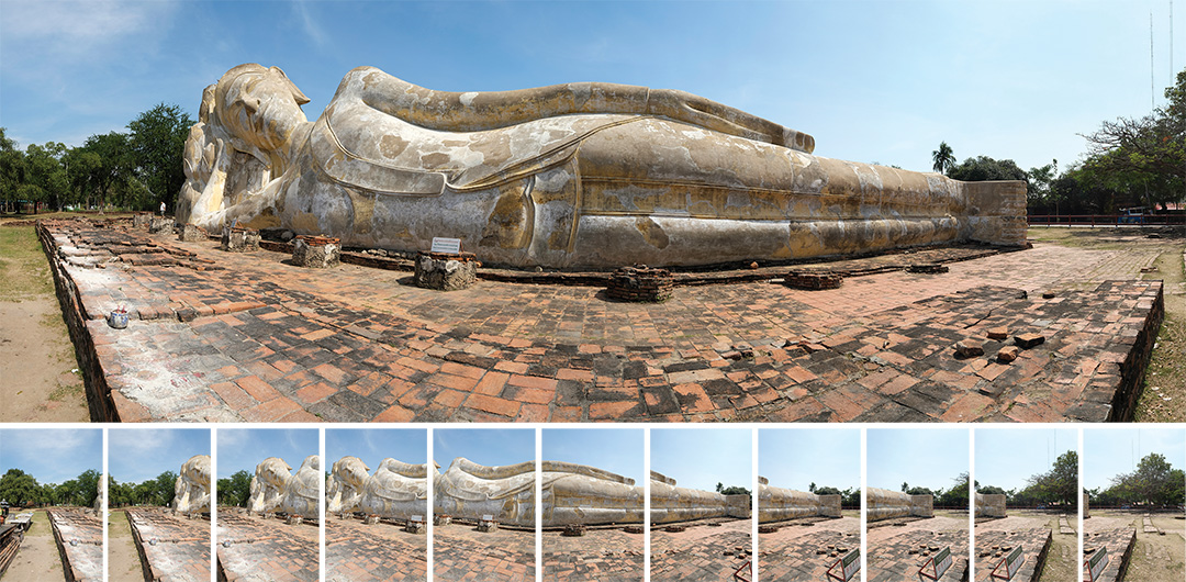ถ้าถามว่า การ Panning กล้องด้วยการใช้การแพนด้วยด้านล่าง หรือด้านบนต่างกันอย่างไร คำตอบก็คือ ใช้งานได้ทั้งคู่ แต่ถ้าขาตั้งกล้องที่คุณใช้อยู่ไม่มีระดับน้ำ การตั้งกล้องให้ตรงได้ระดับแทบจะทำไม่ได้ การ Panning ก็จะรักษาระดับแนวราบไม่ได้ ในกรณีนี้ เราก็สามารถใช้การตั้งระดับน้ำที่ส่วน Panning ด้านบนให้เสถียร เมื่อติดตั้งกล้องกับหัวบอลแล้ว ทำการ Pan ที่ส่วนบนแทน การถ่ายภาพด้วยการ Panning ก็จะรักษาระดับแนวราบให้คงที่อยู่ได้ เส้นขอบฟ้าก็จะตรงไม่เอียงไปเอียงมา ด้วยวิธีนี้เมื่อถ่ายภาพแล้วทำการต่อภาพก็จะได้ภาพที่ต่อได้สนิทเลยทีเดียว