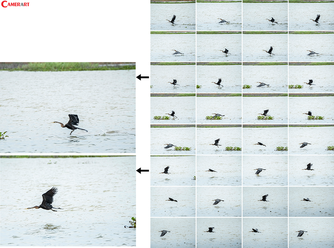 ทำการถ่ายภาพทั้งภาพนกอยู่นิ่ง และนกออกบิน มีทั้งที่ออกบินทันทีทันใดด้วยความรวดเร็วสูง หรือ มีการบินเปลี่ยนทิศทาง เพื่อดูความรวดเร็วในการจับโฟกัสของกล้อง ทำการถ่ายภาพต่อเนื่องด้วยความเร็ว 30-40 ภาพต่อวินาที เพื่อดูความไวในการจับโฟกัสติดตามวัตถุของภาพถ่ายต่อเนื่องว่าจับโฟกัสได้ติดหรือไม่