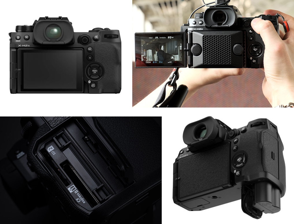 FUJIFILM X-H2S เป็นกล้องรุ่นแรกของฟูจิที่ติดตั้งช่องใส่การ์ด 2 Slot สำหรับการ์ด SD 1 Slot และ CF Express Type B 1 Slot