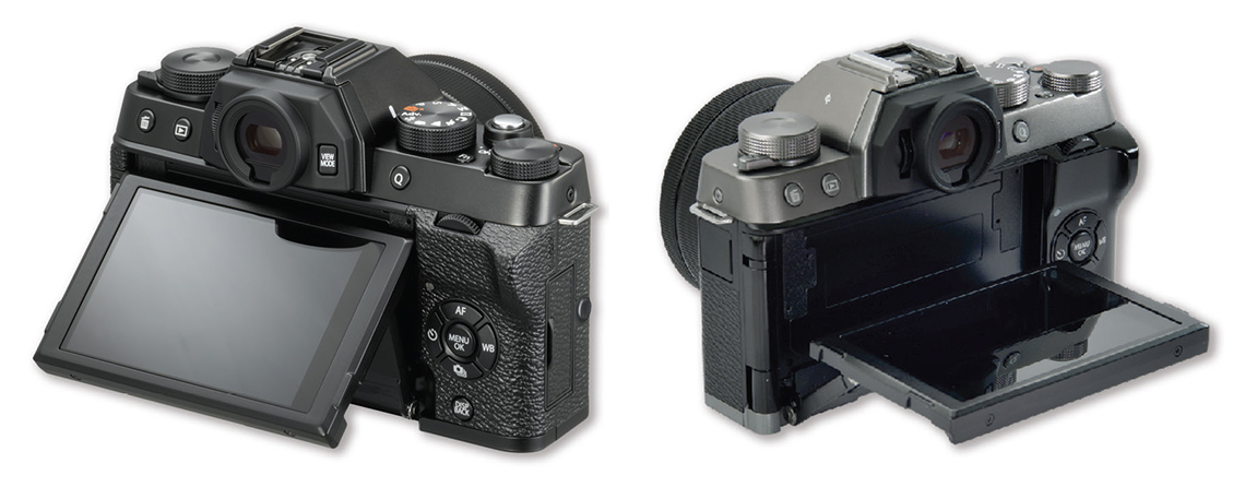 FUJIFILM X-T100 มาพร้อมกับจอพับแบบใหม่ที่พับขึ้นได้ 90 องศา พับลงได้ 45 องศา และสามารถพับออกทางด้านข้างกลับมาด้านหน้าได้ 177 องศา ช่วยให้การถ่ายเซลฟี่สะดวกและคล่องตัวมากยิ่งขึ้น หน้าจอเป็นกระจกแข็งป้องกันรอยขีดข่วนขนาด 3 นิ้ว TFT Display ความละเอียด 1.04 MP แสดงผลภาพ 100% หน้าจอสัมผัสสามารถเลือกตังค่าพื้นที่ในการสัมผัสได้ 7 แบบ และใช้การสไลด์จอเพื่อเรียกฟังก์ชั่นได้ 4 แบบอีกด้วย