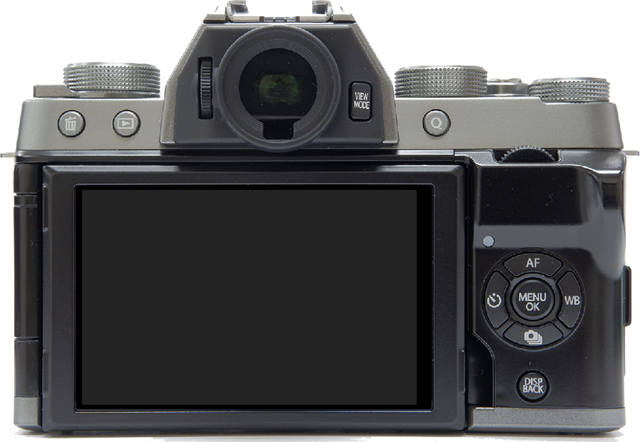 ช่องมองภาพของ FUJIFILM X-T100 เป็นแบบ Organic EL Display คุณภาพสูงที่มีความละเอียดถึง 2.35 MP แสดงผล 100% มีค่า refresh rate อยู่ที่ 60 fps มีระบบ Eye sensor เพื่อสลับการแสดงผลระหว่างช่องมองภาพกับจอหลังกล้องอัตโนมัติ และสามารถปรับตั้งค่า Dioptric ให้ตรงกับสายตาผู้ใช้ มีฟังก์ชั้น Automatic Display Rotation เหมือนกับกล้องรุ่นพี่ในตระกูล X-T