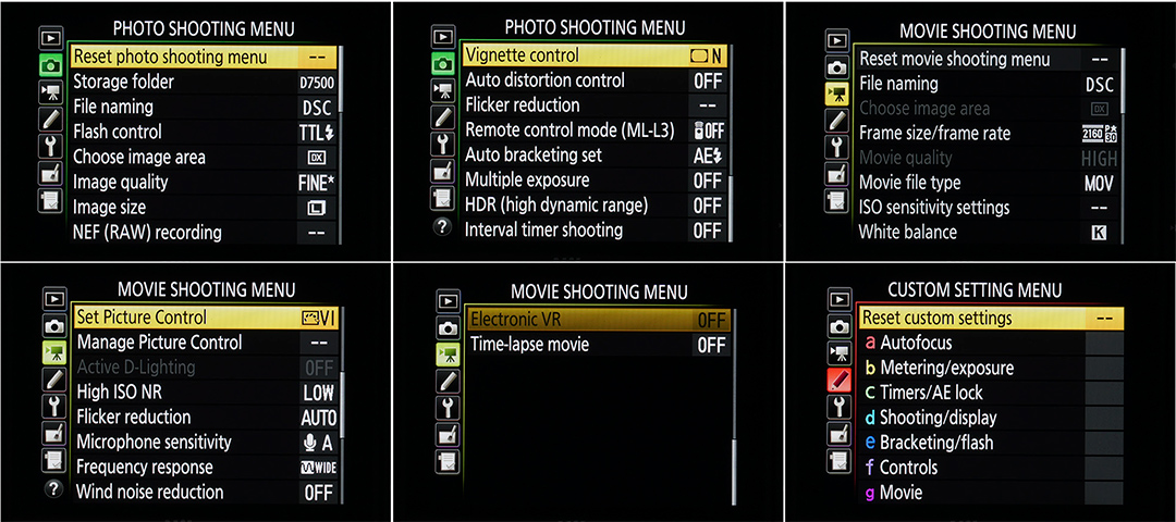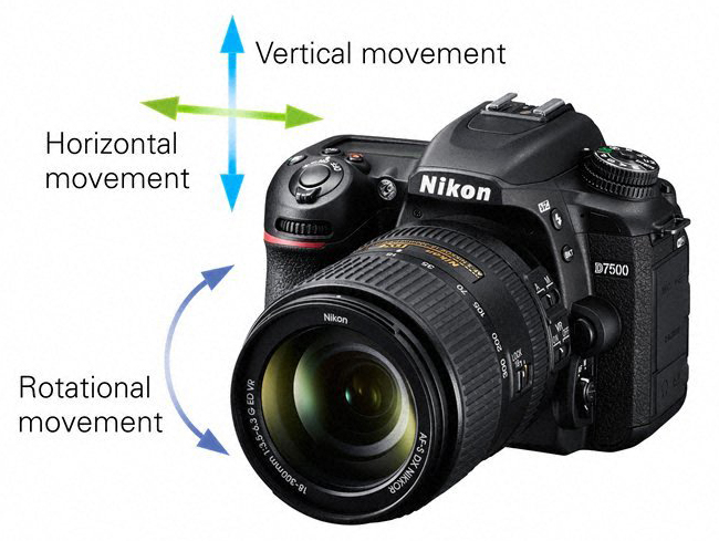 ระบบถ่ายภาพ Video ของ Nikon D7500 เป็นระบบ 4K ก้าวหน้ากว่าของ D7200 ที่เป็นระบบ Full HD แต่ใน D7500 ก็สามารถตั้ง Full HD ได้เช่นกัน ที่สำคัญก็คือ ระบบถ่ายภาพวิดีโอของ Nikon D7500 ได้เพิ่มระบบลดภาพสั่นไหวแบบอิเล็คทรอนิคส์ มาพร้อมใช้งาน เมื่อถ่ายภาพยนตร์โดยใช้มือถือกล้องในโหมด Full HD หรือ HD ฟังก์ชันลดภาพสั่นไหวแบบอิเล็คทรอนิกส์* ของกล้อง D7500 จะลดผลกระทบจากการสั่นของกล้องในทิศทางแนวนอน แนวตั้ง และหมุนวน (กึ่งกลางของเลนส์) การถ่ายฟุตเทจที่ดูราบรื่นจึงง่ายดายยิ่งขึ้นในสถานการณ์ที่คุณไม่สามารถใช้ขาตั้งกล้องได้ หรือเมื่อใช้เลนส์ทางยาวโฟกัสเดี่ยวโดยไม่มี VR แบบออฟติค ยิ่งเมื่อใช้ร่วมกับเทคโนโลยี VR แบบออฟติคของ NIKKOR ก็จะยิ่งเห็นประโยชน์ได้ชัดเจน