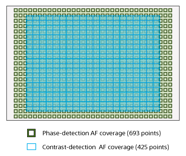 ระบบโฟกัสของ SONY A7III นั้นพัฒนาจาก A7II เดิมที่มีเซ็นเซอร์หาโฟกัสแบบ Phase detection เพียง 117 จุด และแบบ Contrast Detection 25 จุด ขึ้นไปเทียบชั้นกับกล้องมืออาชีพ ด้วยระบบ 4DAF เพราะใช้พื้นฐานเดียวกับกล้องรุ่นเรือธงคือ SONY A9 มีเซ็นเซอร์โฟกัสแบบ Phase detection 693 จุด ทำงานร่วมกับแบบ Contrast Detection อีก 425 จุด กินพื้นที่ 93% ในช่องมองภาพ สามารถโฟกัสในสภาพแสงน้อยได้ถึง EV-3 ให้ความเร็วในการโฟกัสในสภาพแสงน้อยเร็วกว่าเดิม 2 เท่า สามารถดักโฟกัสในระบบโฟกัสต่อเนื่องได้ดีกว่าเดิมถึง 2 เท่า และ A7III ยังปรับปรุงระบบ EYE AF ให้ล้ำหน้าขึ้นไปอีก โดยสามารถทำงานได้ในระบบการหาโฟกัสแบบต่อเนื่องแล้ว ระบบนี้จะจับโฟกัสที่ตาของแบบได้อย่างรวดเร็วแม่นยำ และทำได้แม้จะถ่ายภาพต่อเนื่องที่ความเร็ว 10 ภาพต่อวินาทีก็ตาม อีกทั้งระบบ EYE AF ใน A7III นั้น ยังเปิดกว้างสำหรับผู้ที่ใช้เลนส์ SONY Mount A ของตนที่เป็นมอเตอร์แบบ SSM ได้ด้วยเช่นกัน โดยผ่าน Adaptor LA-EA3