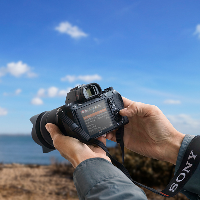 ถ้ามองเพียงผิวเผินโดยเฉพาะด้านหน้าของกล้อง ผู้ที่ใช้ A7II มาก่อนจะคิดว่า SONY แทบไม่ได้มีการเปลี่ยนแปลงอะไรเท่าไหร่เลยเพราะเหมือนกันมาก แต่พอดูรอบด้าน ได้หยิบกล้องขึ้นมาจับถือยกเล็งจะรู้สึกทันทีว่าโซนี่ปรับแต่งแก้ไขข้อบกพร่องเดิมของ A7II ไปได้เยอะมาก ไม่ว่าจะเป็นกริปที่อวบหนาและสูงกว่าเดิมเพราะใส่แบตเตอรี่รุ่นใหม่ ปุ่มกดต่างๆ ไม่ว่าจะเป็นปุ่มกดชัตเตอร์ แป้นหมุนสี่ทิศที่ด้านหลังกล้องต่างก็ยกสูง และเซาะร่องให้นิ้วมือเกาะมากขึ้น และที่ผมชอบมากคือการมีจอยสติกเพื่อเลื่อนปรับกรอบโฟกัสที่โซนี่น่าจะทำมาตั้งนานแล้ว แถมด้วยการย้ายปุ่มบันทึกวีดิโอไปอยู่ใกล้ๆ กับช่องมองภาพ คือกดได้ถนัดขึ้นกว่าเดิมแต่ก็จะไม่เผลอไปกดง่ายๆ จอ LCD หลังกล้องที่ฉลาดขึ้นเพราะมีระบบสัมผัสมาแล้ว และยังแก้ไขสิ่งที่หลายๆคนบ่นคือเวลาพลิกจอแล้วถ้ามือไปบังช่องมองจอ LCD จะดับ ตอนนี้เพียงพลิกหน้าจอเล็กน้อยกล้องก็จะไม่สวิทช์ไปที่ EVF เวลามีอะไรมาบังแล้วครับ และส่วนของ EVF นั้น ถึงจะยังเป็น OLED ความละเอียด 2.36 ล้านพิกเซล เท่าเดิม แต่ได้เพิ่มอัตราขยายของช่องมองภาพเป็น 0.78x และเคลือบผิวเลนส์ตาด้วยเคลือบผิวแบบ T* อันโด่งดังจาก Zeiss อีกด้วย โดยรวมสำหรับการจับถือนี่ดีเลย