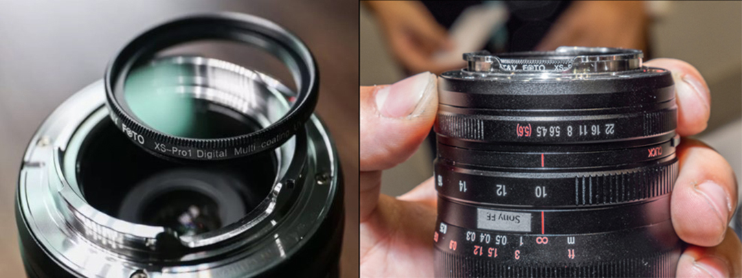 สามารถใส่ฟิลเตอร์แบบเกลียวได้ที่ด้านหลังของเลนส์ เป็นฟิลเตอร์ขนาด 37 มม.