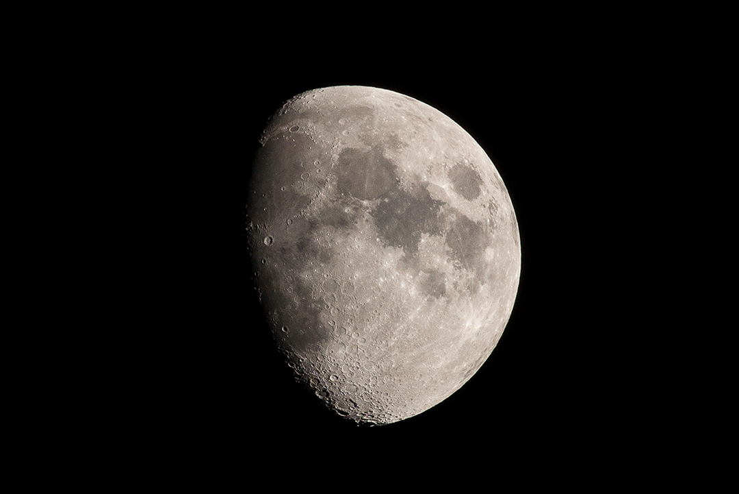 การถ่ายภาพให้เห็นหลุมบนดวงจันทร์ (ไม่ใช่บินขึ้นไปถ่ายหลุมบนดวงจันทร์แบบองค์การนาซ่านะครับ) เราจะเคยเห็นภาพดวงจันทร์ที่มีรายละเอียดเยอะๆ เห็นหลุมๆ ต่างๆ บนดวงจันทร์ การถ่ายภาพแบบนี้ เราจะต้องถ่ายในคืนที่พระจันทร์ไม่เต็มดวง พระจันทร์ครึ่งเดียวนี่แหละเหมาะสมที่สุด เพราะปริมาณแสงที่กำลังพอดีบนดวงจันทร์ที่แสดงรายละเอียดของหลุมบ่อต่างๆ ได้สวยกว่าพระจันทร์เต็มดวง อุปกรณ์ที่สำคัญก็คือเลนส์เทเลโฟโต้ ที่มีกำลังขยายสูง มีความคมชัดดี เพื่อภาพที่ได้จะเห็นพระจันทร์ได้ใหญ่โตสวยงาม ส่วนการถ่ายภาพเราใช้ กฎ Looney 11 ในการบันทึกภาพ หรือถ้าหากว่าใช้ระบบวัดแสงแบบเฉลี่ยหนักกลาง แล้วชดเชยแสงแบบอันเดอร์ประมาณ 1-2 สตอป ทั้งนี้ก็ขึ้นอยู่กับความสว่างของพระจันทร์ในขณะนั้น