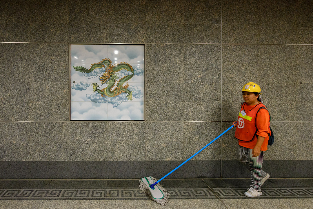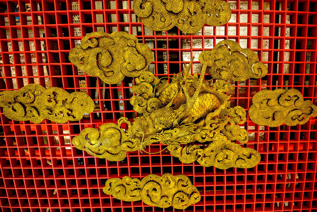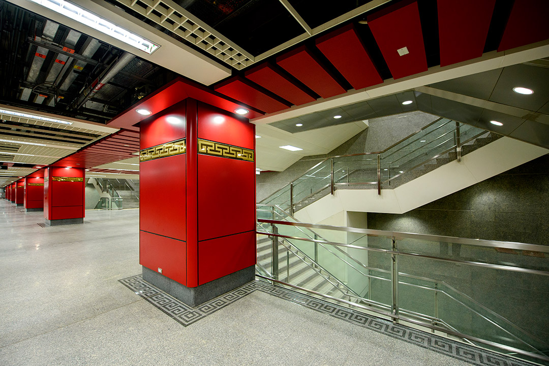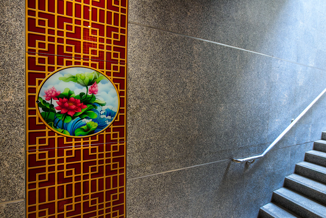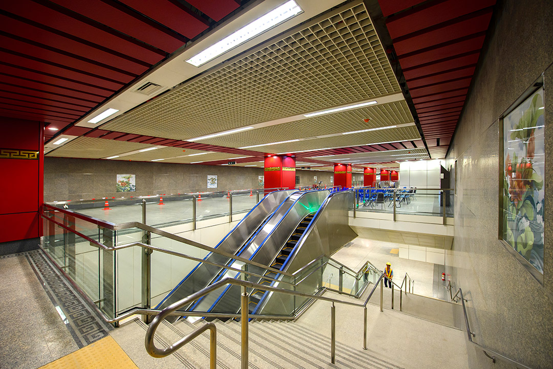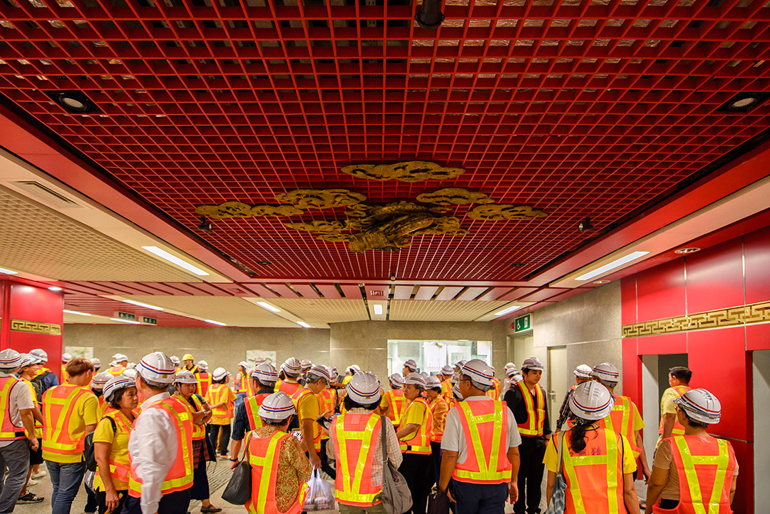 ไฮไลท์ที่โดดเด่นของสถานีวัดมังกรแห่งนี้ ก็คือ รูปปั้นมังกร ที่พาดลงมาจากเพดานบริเวณหน้าตู้จำหน่วยตั๋วอัตโนมัติ ซึ่งให้ความรู้สึกเหมือนมังกรกำลังจ้องมองลงมา ดูน่าเกรงขามและสวยงามมาก คาดว่าเมื่อเปิดใช้งานจุดนี้น่าจะเป็นจุดที่ผู้คนมาแวะถ่ายรูปกันมากที่สุด เราเดินต่อไปชั้นล่างบริเวณชานชาลา การตกแต่งจะเป็นในรูปแบบเดียวกับชั้นบนทุกประการ จุดเด่นที่คาดว่าพอนั่งรถไฟมาถึงสถานีวัดมังกรนี้ จะมองเห็นเสาลอยสีแดงเด่นกว่าใคร น่าจะใช้เป็นจุดสังเกตที่ดีของผู้เดินทางไปมาได้ว่ามาถึงสถานีวัดมังกรแล้ว
