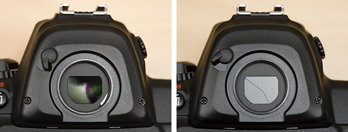 ชัตเตอร์ที่ช่องมองภาพ มีไว้เพื่อป้องกันแสงไม่ให้รบกวนเซ็นเซอร์วัดแสงเมื่อไม่ได้เอาตาแนบช่องมองภาพ หรือมีแสงลอดเข้าทางช่องมองภาพ และป้องกันแสงไม่ให้ย้อนกลับเข้าอิมเมจเซ็นเซอร์เวลาเปิดรับแสงยาวๆ แล้วมีแสงส่องเข้าทางด้านหลังช่องมองภาพ ภาพจาก http://photo.net/nikon-camera-forum/00VVSF