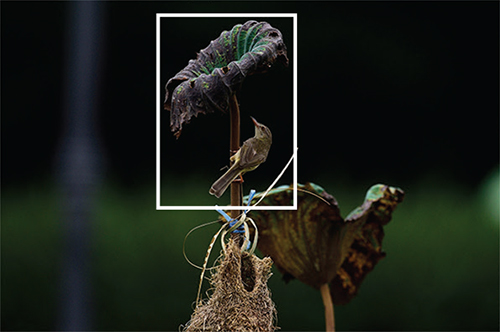 แต่อย่าเพิ่งคิดว่าจะเห็นนก แล้วถ่ายเลยนะครับ สิ่งที่ผู้ชำนาญในเรื่องนก จะเป็นผู้ชี้เป้าได้ชัดเจนก็คือ ปกตินกจะไม่เข้ารังทันที จะมีกิ่งเกาะก่อนเข้ารัง เป็นสัญชาติญาณของการระวังภัย ดังนั้นในการถ่ายภาพ เราก็จะสามารถคาดเดาจากผู้ชี้เป้าได้ว่า นกที่ต้องการถ่ายภาพนั้น จะมาเกาะที่จุดใดก่อน แล้วจึงจะมาเกาะที่รัง นั่นทำให้เราทราบได้ว่า เราควรจะเล็งกล้องไปที่ตำแหน่งใดบ้างสำหรับการถ่ายภาพ