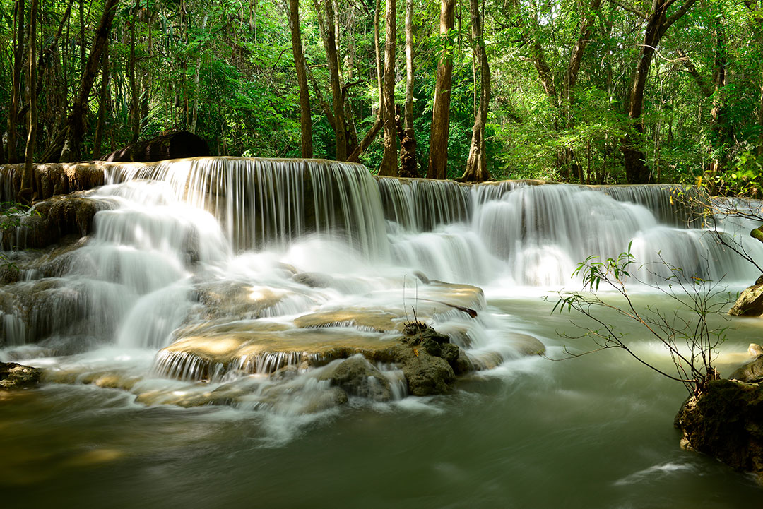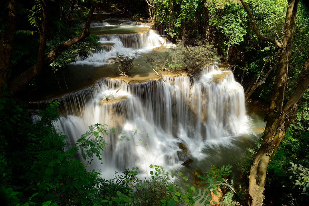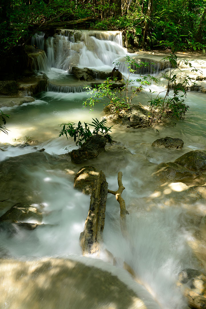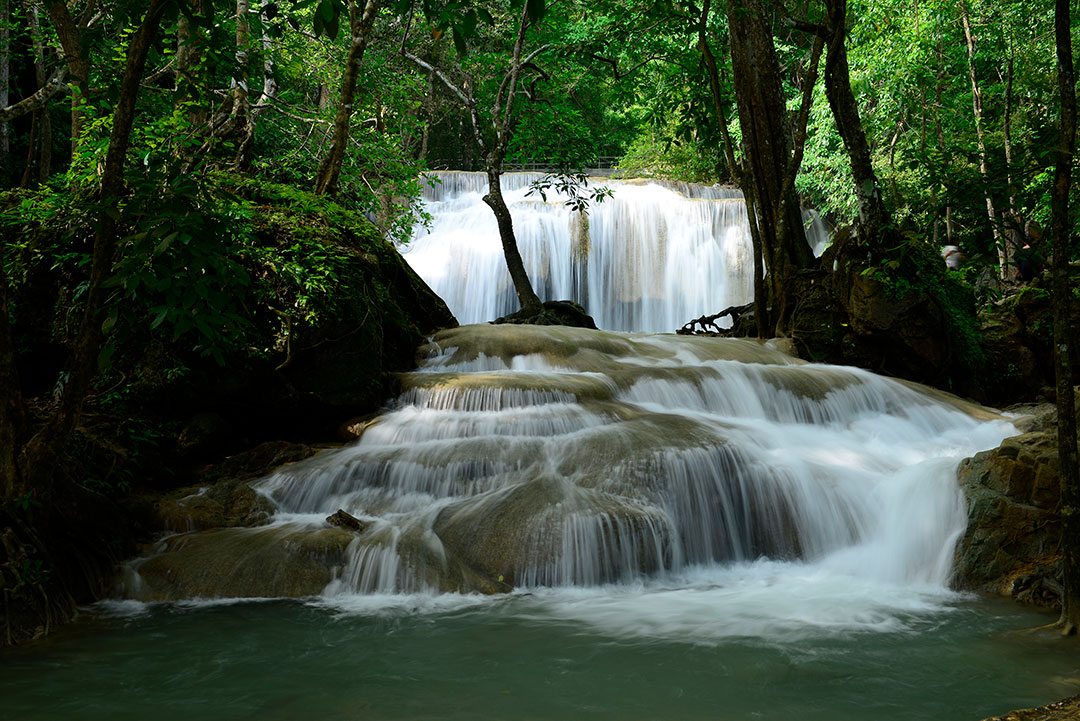 น้ำตกเอราวัณ ชั้นที่ 1 ไหลคืนรัง มองเห็นไปยังชั้นที่ 2 เลนส์ 24-70 1/5 วินาที f/11