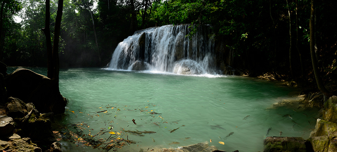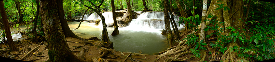 น้ำตกเอราวัณ ชั้นที่ 4 อกผีเสื้อ ต่อภาพพาโนรามา เลนส์ 24-70 มม. 1/4 วินาที f/11