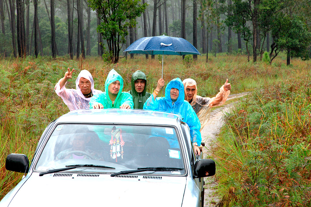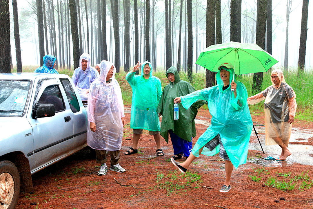 ถ่ายภาพบนรถกลางฝน ที่ทุ่งนางพญา