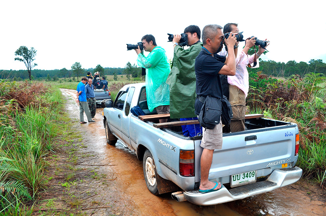 สำหรับที่ทุ่งนาพญา แทบไม่ต้องพูดถึง ทุกคนนั่งรถฝ่าสายฝนเข้าไปตั้งแต่แรกแม้เมื่อถึงจุดถ่ายภาพ ฝนฟ้าก็ยังไม่ยอมเลิกรา ต้องกินข้าวกล่องกันกลางสายฝนพรำกันเลย แต่กระนั้น หลายคนก็ยังได้ภาพถ่ายมาฝากเหมือนกัน กล้องทุกตัวปลอดภัยดีครับ ไชโย….