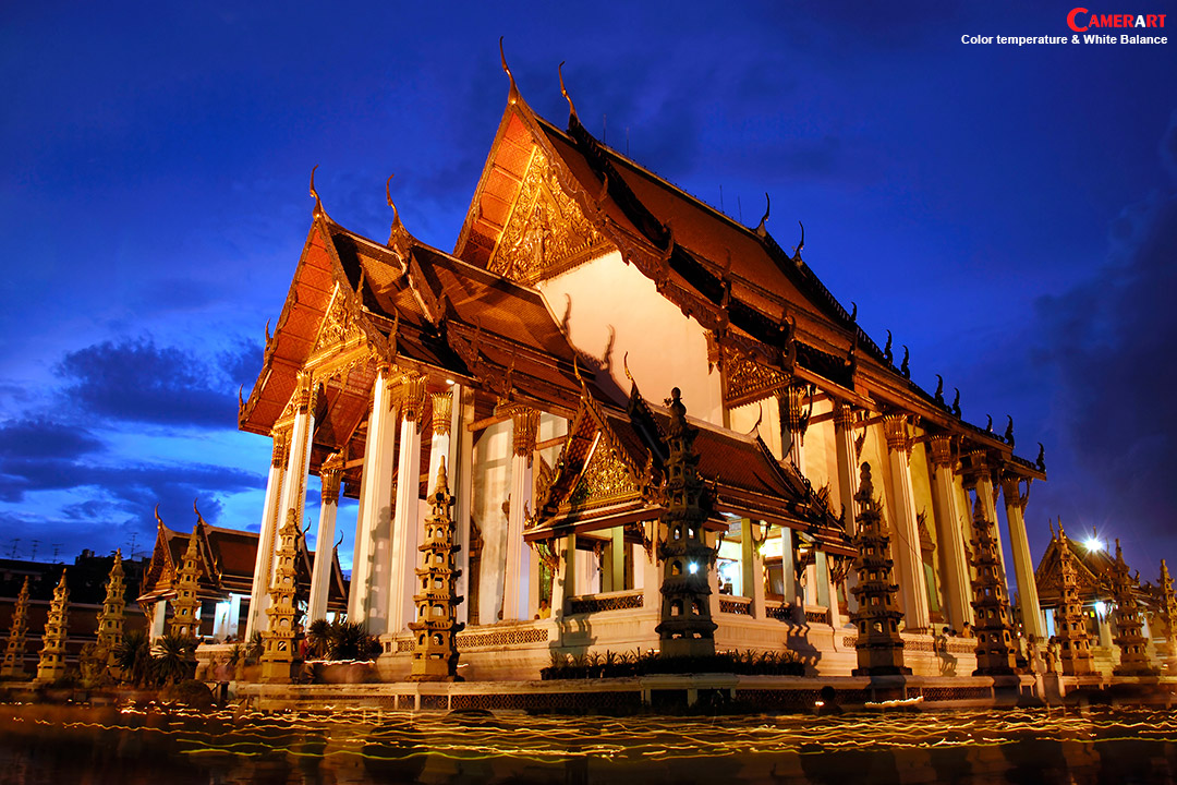 นอกจากนี้ถ้าเราควบคุมอุณหภูมิสีของภาพได้ เราจะสามารถควบคุมสีสัน บรรยากาศ และอารมณ์ของภาพให้เป็นไปตามที่เราต้องการได้อีกด้วย เช่นการตั้งค่า WB ที่อุณหภูมิสีสูงหรือต่ำกว่าแหล่งกำเนิดแสง ก็จะได้สีและอารมณ์ของภาพอีกแบบหนึ่ง อุณหภูมิสีของแสงที่ต่ำกว่า 5000K จะให้อารมณ์ของภาพที่โทนอุ่น (Warm Tone) ในขณะที่อุณหภูมิสีที่สูงกว่า 5500K จะให้อารมณ์ของภาพที่โทนเย็น (Cool Tone) ตรงนี้จะทำให้เราสร้างสรรค์ภาพถ่ายที่มีคุณภาพได้อีกมากมายครับ…