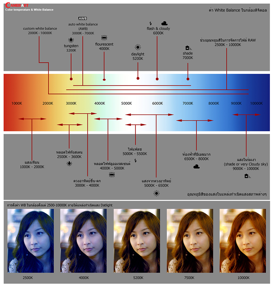 การตั้งค่า White Balance (WB) ในกล้องให้ถูกต้องสำหรับการถ่ายภาพนั้น เราควรรู้จักเรื่องค่าของ อุณหภูมิสีของแสง (Color temperature) เสียก่อน