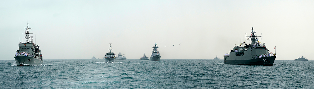 โจทย์ของภาพที่อยากได้ในครั้งนี้ก็คือภาพการตรวจพลสวนสนามของเรือประธานที่กำลังผ่านเรือรบต่างๆ จากระยะห่างของเรือการเก็บภาพในเฟรมเดียวคงเป็นไปได้ยากแม้การใช้เลนส์มุมกว้างก็ตามเพราะจะทำให้เห็นเรือนั้นเล็กเกินไปและลักษณะภาพคงดูโล่งเคว้งคว้างไปหมดการถ่ายภาพแบบพาโนรามาด้วยเลนส์เทเลโฟโต้ถูกนำมาเลือกใช้ทันที