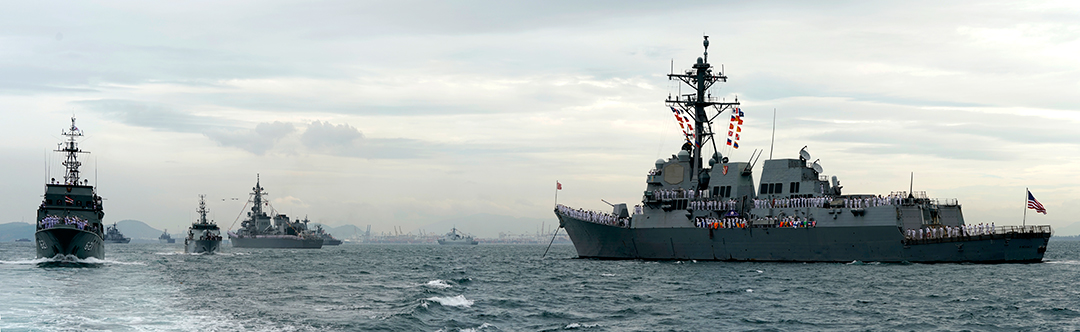 การสวนสนามทางเรือแบบ fleet review นั้นเรือรบทั้งหมดจะจอดเรืออยู่กับที่เรียงกันตามเส้นทางเรือโดยเรือประธานจะแล่นผ่านเพื่อเป็นการตรวจพลส่วนเรือของช่างภาพนั้นจะมีทั้งแบบแล่นติดตามแล่นประกบข้างและมีบางจังหวะที่ขึ้นนำบ้างเป็นระยะ และในการบันทึกภาพการสวนสนามทางเรือนานาชาติครั้งนี้มีภาพหนึ่งที่ผมต้องการถ่ายให้ได้นั่นก็คือภาพที่แสดงให้เห็นถึงเรือรบจำนวนมากทั้งของไทยและต่างประเทศที่มาจอดตั้งแถวรับการตรวจพลสวนสนามจากเรือประธานนั่นก็คือเรือหลวงถลาง ซึ่งด้วยขนาดของเรือรบแต่ล่ะลำนั้นมีขนาดที่ใหญ่โตการจอดเรือขนาดใหญ่เช่นนี้จะต้องเว้นระยะห่างของเรือแต่ล่ะลำนั่นหมายความว่าบริเวณอาณาเขตของการสวนสนามทางเรือในครั้งนี้จะกินบริเวณกว้างมาก