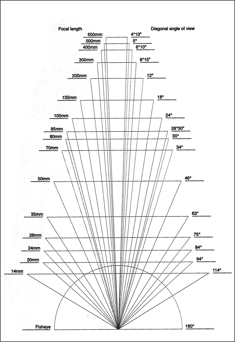 Angle of View หรือ องศาการรับภาพเลนส์ที่มีทางยาวโฟกัสที่แตกต่างกันจะให้องศาการรับภาพที่แตกต่างกันไปด้วย โดยเลนส์ที่มีทางยาวโฟกัสน้อย จะให้องศาการรับภาพที่กว้าง ส่วนเลนส์ที่มีทางยาวโฟกัสมาก จะให้องศาการรับภาพที่น้อย