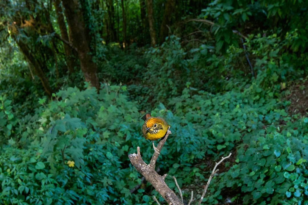 ภาพนกที่ถ่ายด้วยเลนส์มุมกว้าง สังเกตฉากหลังของภาพจะถูกผลักออกไป
